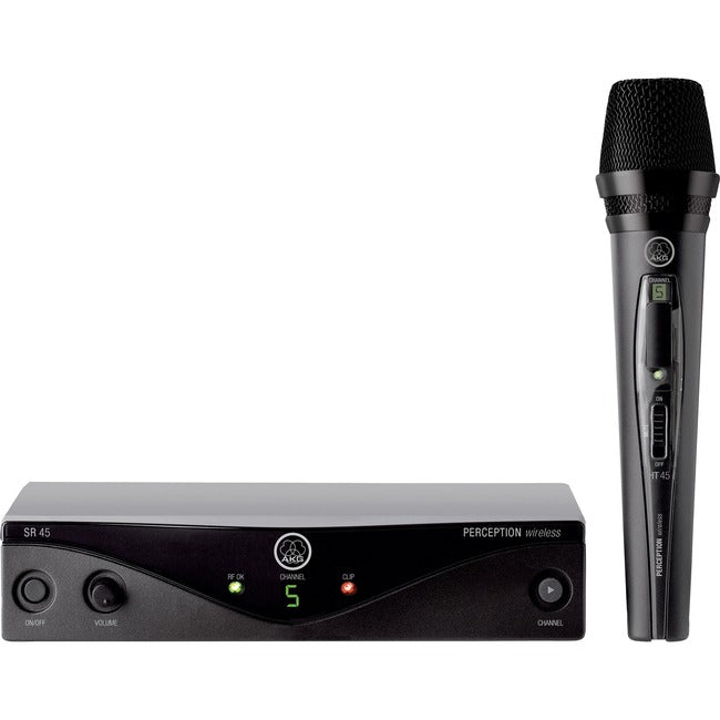 The Perception Wireless high performance Vocal Set delivers brilliant sound and is surprisingly easy to use. The included HT45 handheld transmitter features a dynamic microphone with cardioid polar pattern, ensuring voices to cut through any mix. The SR45 receiver provides professional XLR and 1/4" jack outputs.