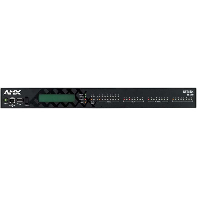 The NX-4200 / NetLinx® NX Integrated Controller is a programmable network appliance specifically designed to control AV and building technology using multiple analog and digital formats. The NX-4200 provides a scalable platform for the future by combining high performance, backward compatibility and extensive network security features. With its front panel display, built-in Ethernet switch and PoE capability, the NX-4200 is the ideal solution for demanding, technology-rich environments. The NX-4200's all-in-one architecture also delivers the lowest Total Cost of Ownership in the industry, thanks to ease of support, maintenance and configuration, as well as reduced hardware and cabling costs.