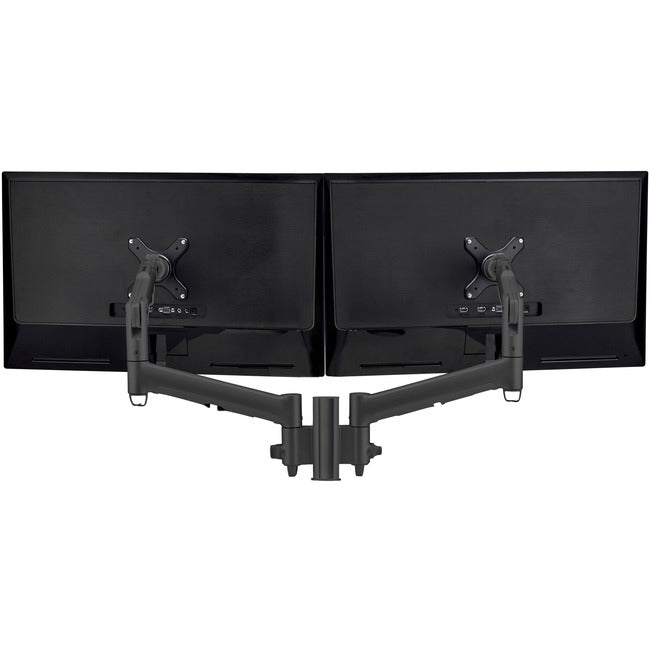 The AWMS-2-D13 is a combination of two monitor spring arms attached to a 5.3in post. Its spring-assisted design with three points of articulation and landscape to portrait rotation enables effortless adjustment from a seated position and is the ideal solution for Activity Based Workplaces. Generous upward tilt and arm reach make it an ideal support for the touch screen displays and sit/stand working environments. The arm incorporates a spring tension visual gauge indicator to save time and effort with multiple installations. Built from lightweight and yet durable aluminum, the mount can be easily recycled at the end of its life.