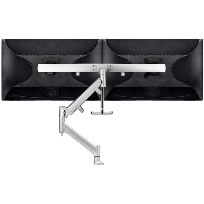 The AWMS-RHXB-H-S dual-crossbar-display desk mount is designed to support two displays with a single monitor arm. Its spring-assisted design with three points of articulation enables effortless simultaneous adjustment of both monitors from a seated position. The crossbar features a horizontal rail which enables display position adjustment in both directions, to accommodate monitors of different sizes and landscape/portrait configurations. Supports two displays up to 27in weighing 4lb to 15lb. Up to 11lb of counterbalance is also possible for uneven loads (different monitor sizes). Comes with a desk clamp mounting option.