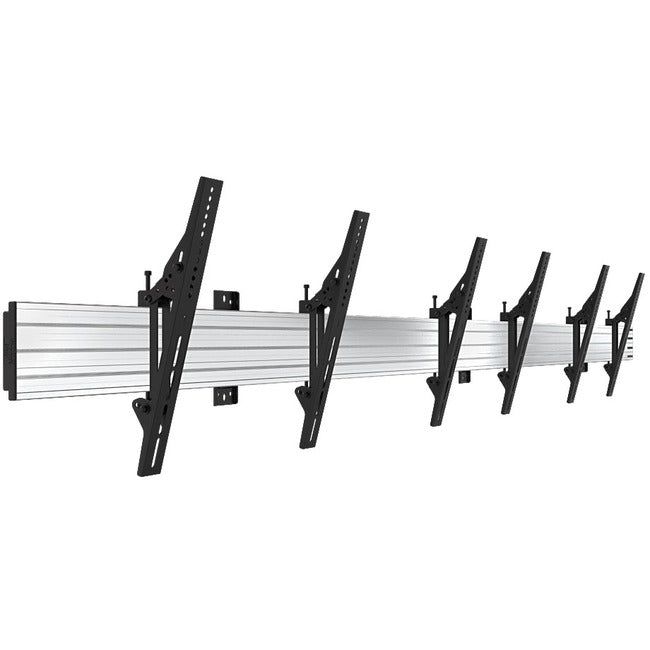 Atdec pre-configured mounting solution for digital menu boards. The mounting brackets support displays up to 110lb per display and are attached to a 118.1" horizontal mounting rail, with the added convenience of tilting mechanism.