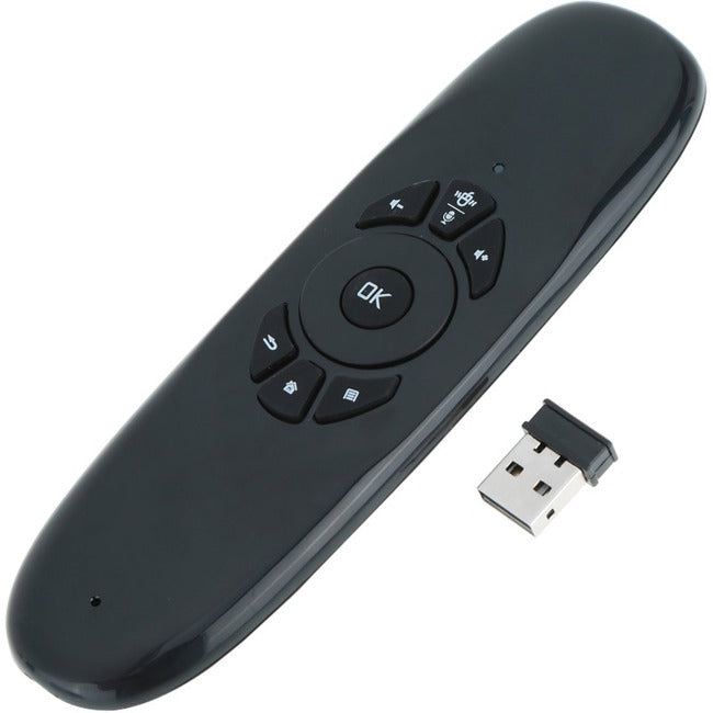 4XEM's C120 is a remote controller with the multi-function of Air Mouse, keyboard, Multimedia (Android, Mac OS, etc.) control and motion sense support. With an easy to install USB receiver and 2.4G wireless connection this remote is a great plug-in and play option. Additionally, with the use of its gyroscopic recognition and sensor capabilities, this remote provide accurate and simple control of its mouse cursor. Use this Air Mouse with any PC, Smart TV, Tablet or Network Media player you own for precise and flexible control.