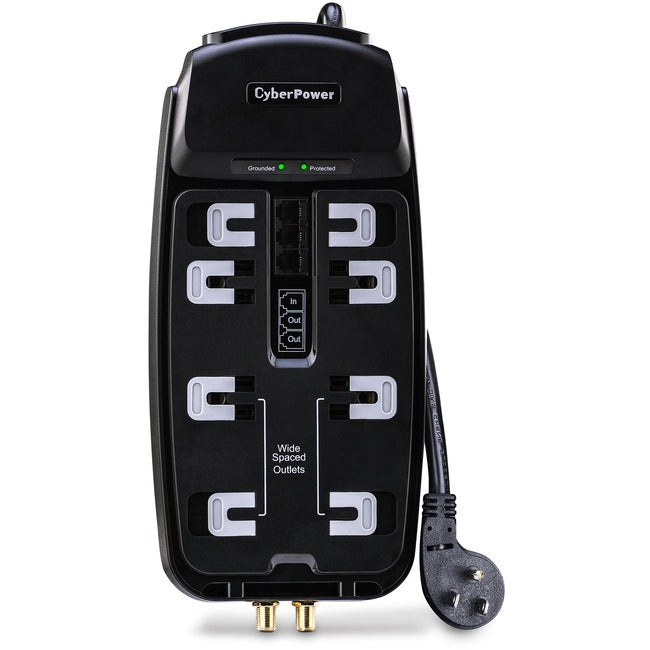 The Home Theater Surge Protector CSHT808TC provides 2850 joules of surge protection and 8 outlets to safeguard your home theater equipment from damage caused by electrical surges. Data line protection occurs with RJ11 ports for telecommunication devices such as phones, faxes, modems, and DSL lines. Gold-plated RG6 coaxial connectors protect cable/satellite TV receivers and broadband modems.