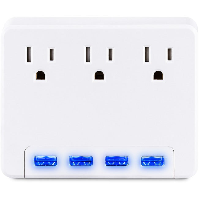The CyberPower P3WU Wall Tap features 3 power-expanding outlets and backlit USB port lighting so it's easy to find even in low lighting. The glow of the LED takes the frustration out of locating and plugging in personal electronics. The 4 USB charging ports will keep your tablets, smart phones, gaming gear, fitness trackers, and other electronics up and running. Plus, it's backed by our One-Year Limited Warranty.