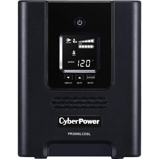 A mini-tower UPS with line interactive topology, the CyberPower Smart App Sinewave PR3000LCDSL provides battery backup, power protection (using sine wave output), and surge protection for corporate servers, department servers, storage appliances, network devices, and telecom installations requiring Active PFC power source compatibility. The PR3000LCDSL uses Automatic Voltage Regulation (AVR) to correct minor power fluctuations without switching to battery power, which extends battery life. AVR is essential in areas where power fluctuations occur frequently. The PR3000LCDSL comes with a three-year warranty, and a ,375,000 Connected Equipment Guarantee.