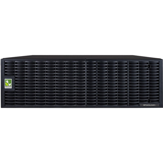 The CyberPower BP240VL3U01 rack/tower convertible Extended Battery Module (EBM) extends UPS runtimes during power outages. Designed for select Smart App Online UPS systems, this EBM takes 3U of rack space and can be installed in a rack or tower configuration to match the UPS form factor. It also has a built-in battery charger, providing Fast Charge Technology to quickly restore the backup power supply from 0-90% in four hours. Up to ten EBMs can be connected in a daisy-chain to the UPS. The BP240VL3U01 typically has a UPS charging time of four hours regardless of whether one or ten EBMs are installed when Fast Charge is connected. The BP240VL3U01 is compatible with OL6KRT, OL6KRTF, OL8KRT, OL8KRTF, OL10KRT, OL10KRTF, and OL10KRTHW. With a three-year warranty, you can trust CyberPower's commitment to the quality of the BP240VL3U01.