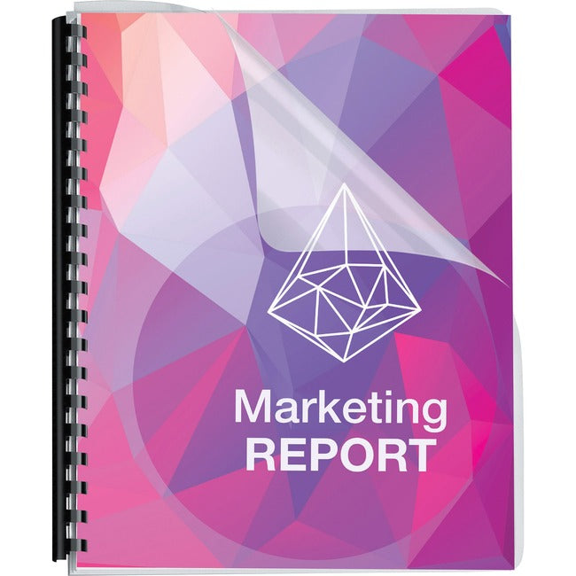 Oversized transparent cover highlights your title page. Durable, 8 mil clear plastic protects letter-size bound documents from spills and tears. Comb binding covers are pre-punched for easy binding. They are not for use with thermal-binding systems. Rounded corners give your reports a soft, inviting look.