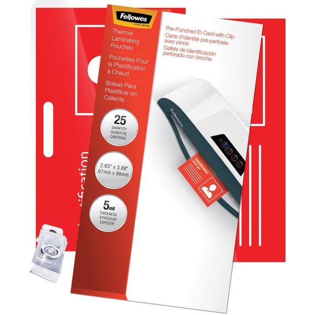 Preserve, enhance and protect your ID badges in these durable, pretrimmed glossy pouches. Premium materials ensure clear, durable results. Pouches are easy to use. Simply center your ID badge or similar-size item in the pouch and insert into a laminator. 5 mil thickness is designed for moderate handling, filing or posting. Pretrimmed pouches are compatible with all laminator brands. Pouches are punched and include clips.