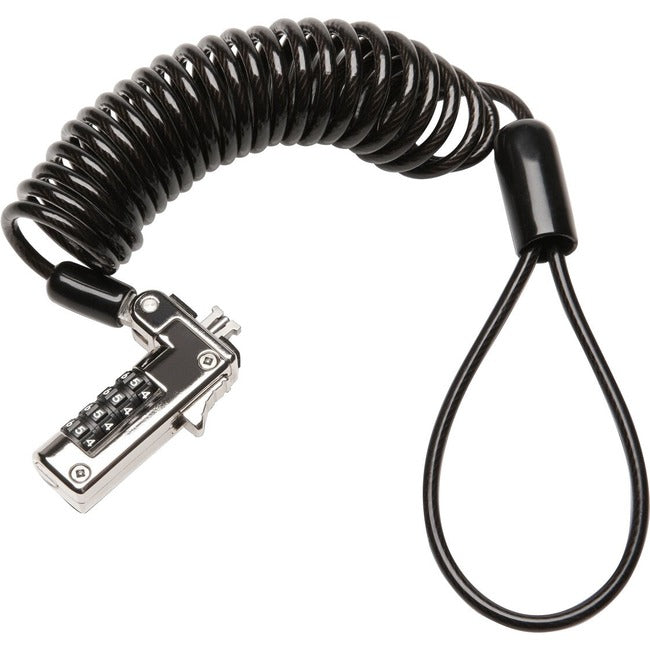 Ideal for thin laptops, the Slim NanoSaver® Portable Combination Lock allows the laptop to lie flat and stable, and won't block valuable ports. Self-coiling carbon steel cable sheathed in plastic stretches up to six feet and shrinks down to three inches, for easy portability. Features include a resettable four-number combination; one-handed operation; and Register & Retrieve™ for quick, secure, and easy combination retrieval. Meets or exceeds rigorous strength testing standards. Five-year warranty. From Kensington, inventor of the laptop cable lock, and industry leader in physical device security for more than 25 years.