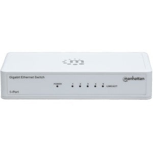 The Manhattan 5-Port Gigabit Ethernet Switch is perfect for home office or entertainment system use, as well as many small office applications. Small, powerful and reliable, this Gigabit Ethernet Switch is easy to install and connects up to five Ethernet-ready devices - computers, gaming systems, network printers, media streamers, network attached storage, Smart TVs ... you name it - at speeds of up to 1000 Mbps (1 Gigabit) over standard Cat5e or Cat6 Ethernet cables.