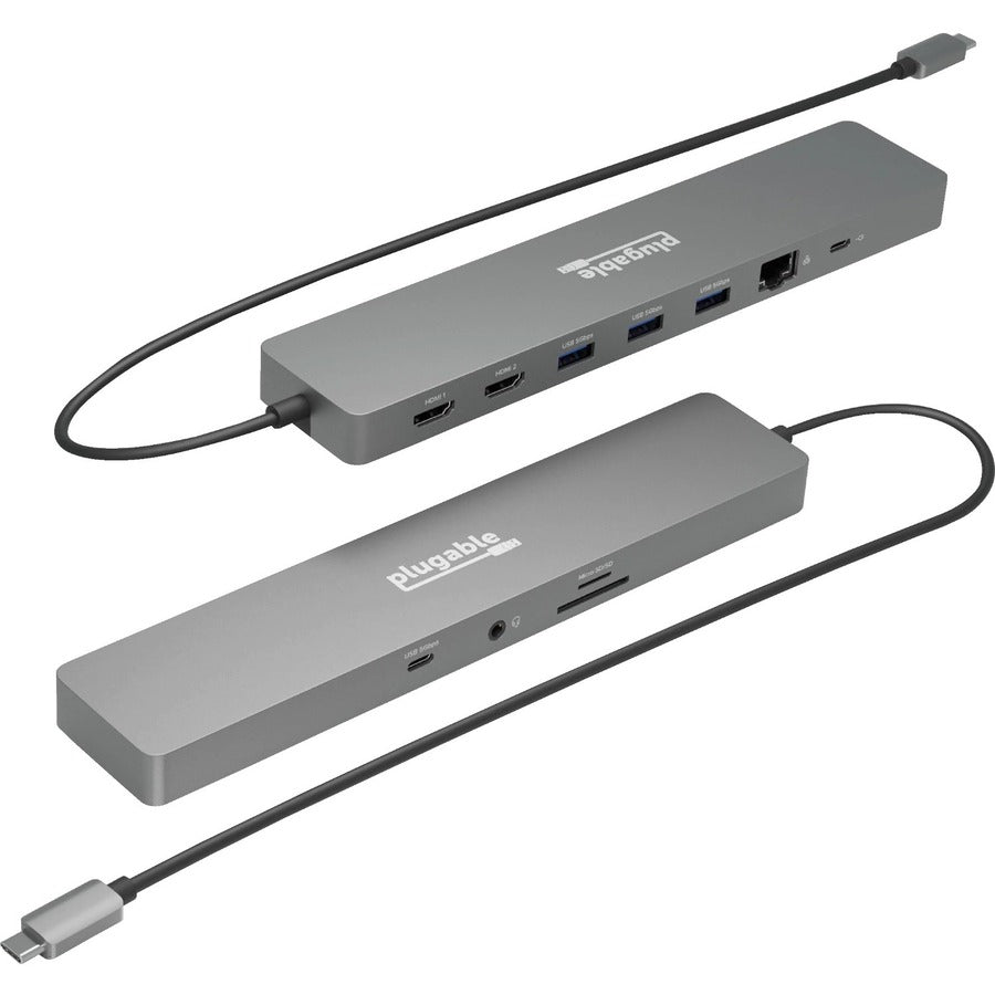 Plugable Technologies Plugable 11-in-1 Usb-c Docking Station, 100w Pass-through Charging, Dual Monitor