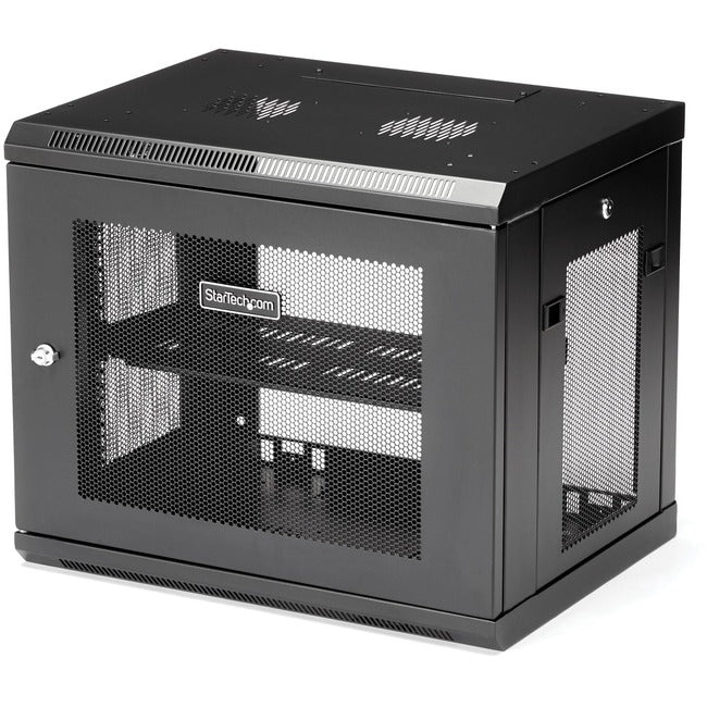 The 9U network cabinet features a removable and reversiblefront door and removable side panels, each with quick-release mechanisms,so you can easily access your equipment. Plus, each door and panel on this rack features an independent lock, ensuring your equipment is secure.The wall-mount server rack also includes all of the cage nuts and mounting screws you'll need to fill the rack with equipment, saving you the time, hassle and cost of sourcing mounting hardware.