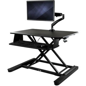 • Sit-stand workstation features high-quality construction, engineered with steel and MDF wood base, tray and work surface