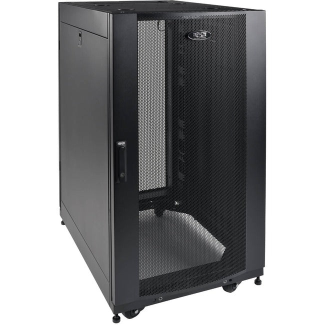 To ensure your valuable equipment stays safe and secure, the side panels, reversible back door and reversible, removable front door lock to prevent unauthorized access. The front and rear doors are perforated, which allows air to flow freely through the rack to keep equipment cool. Vented top panels and an open bottom help remove warm air from the enclosure and draw in cool air by convention(they also support the installation of standard case fans, such as Tripp Lite's SRFANROOF).