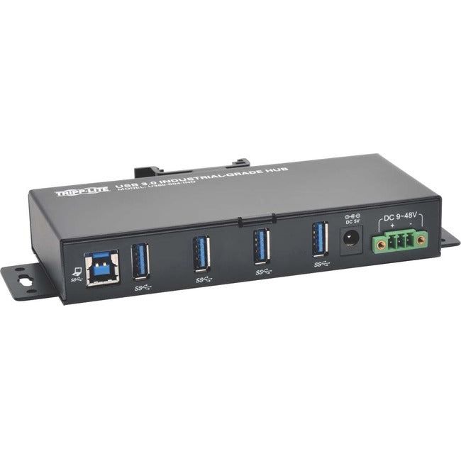 Tripp Lite's U360-004-IND is a rugged, all metal, USB 3.0 SuperSpeed 4-Port hub is ideal for use in data centers, work areas and Industrial applications. Can be mounted on a wall or din rail with included mounting hardware. Supports SuperSpeed USB 3.0 transfer rates at 5 Gbps, but is also backward compatible to USB 2.0 and 1.1 (480mbps and 12mbps). Hub is bus-powered through the computer connection, or can self power with an external adapter (not included) or via the included 3-wire terminal block connector (9-40V DC).