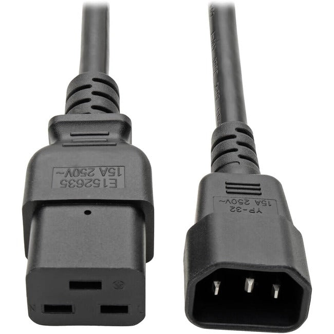 Tripp Lite Heavy Duty C19 to C14, 4 ft. Power Cable. Constructed with 3 x 14 AWG copper conductors, fully molded ends, 100-250V / 15A rating.