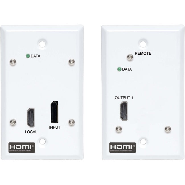 This complete wall-plate-style transmitter and receiver system is recommended for video presentations in conference rooms, schools, trade shows, meeting facilities, houses of worship, retail settings, hotels and other digital signage applications where the source and display are farther apart than conventional A/V cables allow. Both the transmitter and receiver have a single-gang metal wall plate design with a metal back cover and blend perfectly into the room décor.