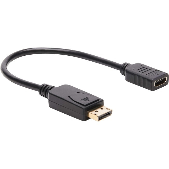 This DisplayPort to HDMI passive adapter (M/F) allows you to play stereo audio and high-definition video from your DisplayPort computer or laptop on an HDMI television, monitor or projector. You can continue using your existing HDMI display and HDMI cable without the time, effort or expense of replacing it with a new DP monitor. This one-foot cable is an easy, inexpensive way to play 1080p video in classrooms, conference rooms, trade shows and other on-the-road presentations.
