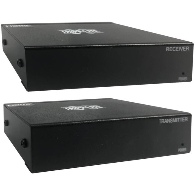 The included transmitter and receiver work right out of the box with no software required. Mounting hardware is included for installing both units on a wall, pole or 19-inch rack. Connect the transmitter to the source with a user-supplied HDMI cable (such as Tripp Lite's P568- or P569-Series). Then, connect the two units with user-supplied Cat6 patch cable (such as Tripp Lite N262-Series). Finally, connect the receiver to the display with another user-supplied HDMI cable.