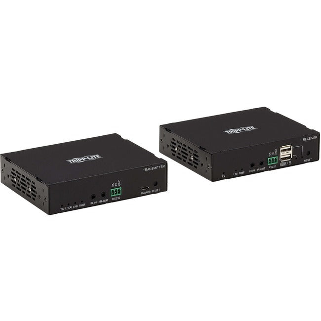 This complete transmitter and receiver system is recommended for video presentations in conference rooms, schools, trade shows, meeting facilities, houses of worship, retail settings and other digital signage applications where the source and display are farther apart than conventional A/V cables allow. The B127E-1A1-HH extends 4K video and stereo audio signals from an HDMI source device to an HDMI display up to 328 feet (100 meters) away via user-supplied Cat6 cabling.