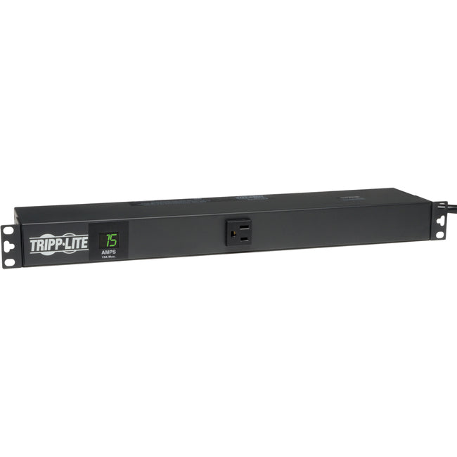 Tripp Lite's PDUMH15 AC power distribution unit offers a digital current monitor and provides 15 amps of 120 volt capacity in a versatile multi-mount cabinet. Detachable mounting flanges are configurable for wallmount, under-counter, or 1U/0U rackmount installation. Uses only 1U of rack space when installed in any 19-inch rack, with the potentional for zero U mounting in the cable management area of most rack enclosures. Built-in digital ammeter display offers continuous visual power consumption data for the entire PDU. Attractive rackmount housing with 1 front and 12 rear facing outlets measures only 4.5 inches in depth. Unfiltered electrical pass-through without a power switch makes the PDUMH15 ideal for distributing alternate waveform UPS or generator power in rack enclosures, network closets, and more. Includes 12 rear facing NEMA 5-15R and one front facing outlet, 15-ft. AC power cord, 15 amp breaker, TVSS grounding lug and rugged all metal rackmount case design.