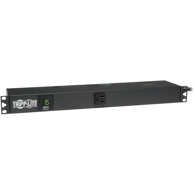 Tripp Lite's PDUMH15 AC power distribution unit offers a digital current monitor and provides 15 amps of 120 volt capacity in a versatile multi-mount cabinet. Detachable mounting flanges are configurable for wallmount, under-counter, or 1U/0U rackmount installation. Uses only 1U of rack space when installed in any 19-inch rack, with the potentional for zero U mounting in the cable management area of most rack enclosures. Built-in digital ammeter display offers continuous visual power consumption data for the entire PDU. Attractive rackmount housing with 1 front and 12 rear facing outlets measures only 4.5 inches in depth. Unfiltered electrical pass-through without a power switch makes the PDUMH15 ideal for distributing alternate waveform UPS or generator power in rack enclosures, network closets, and more. Includes 12 rear facing NEMA 5-15R and one front facing outlet, 15-ft. AC power cord, 15 amp breaker, TVSS grounding lug and rugged all metal rackmount case design.