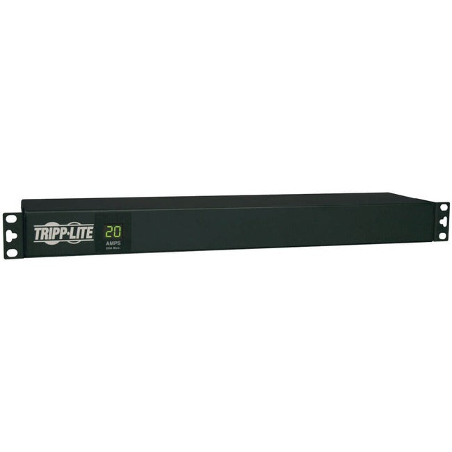Tripp Lite's PDUMH20 AC power distribution unit offers a digital current monitor and provides 20 amps of 120 volt capacity in a versatile multi-mount cabinet. Detachable mounting flanges are configurable for wallmount, under-counter, or 1U/0U rackmount installation. Uses only 1U of rack space when installed in any 19-inch rack, with the potential for zero U mounting in the cable management area of most rack enclosures. Built-in digital ammeter display offers continuous visual power consumption data for the entire PDU. Attractive rackmount housing with 12 rear-facing outlets measures only 4.5 inches in depth. Unfiltered electrical pass-through without a power switch makes the PDUMH20 ideal for distributing alternate waveform UPS or generator power in rack enclosures, network closets, and more. Includes 12 rear-facing NEMA 5-15/20R outlets, 15-ft. AC power cord with L5-20P input plug. Comes wih 6-inch L5-20P-to-5-20P adapter, 20 amp breaker, TVSS grounding lug, and rugged all-metal rackmount case design.