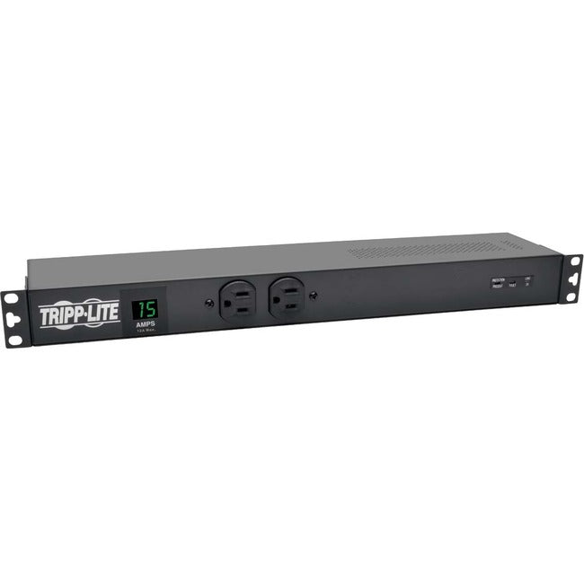 Tripp Lite Metered PDU / Power Distribution Unit with Isobar Surge Suppression offers real-time local reporting of load level in amps, plus premium ISOBAR network-grade AC surge and noise suppression. Digital display continuously reports PDU output current to prevent circuit overloads as additional equipment is added. Set of 3 front-panel LEDs provide notification of wiring fault, protection present and line OK status. High quality design includes rugged all-metal housing and secure rackmount installation with included mounting accessories.