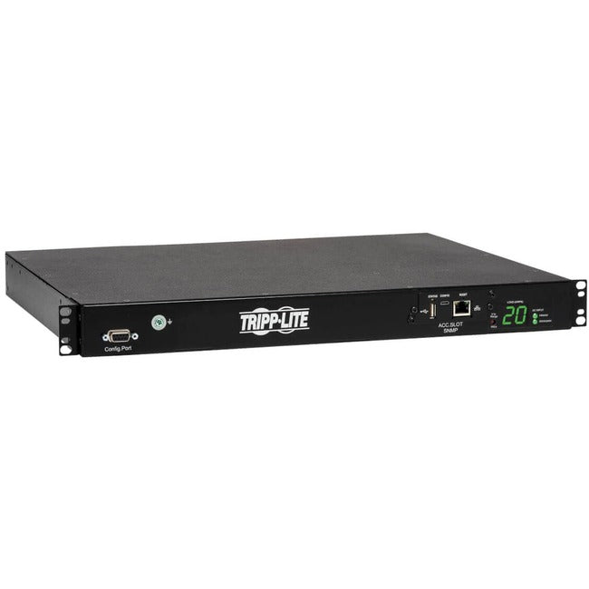 Tripp Lite Switched ATS / Auto Transfer Switch provides a redundant power option for single-corded network devices. Dual input cords support separate connection to PRIMARY and SECONDARY power sources. The ATS will normally maintain continuous output to all outlets as derived from the primary input cable. If the primary power source becomes unstable or fails altogether, the ATS will switch over to the secondary power source until the primary input is restored and stable. Switched PDU features include individually controllable output receptacles and built-in network interface. Super-fast switchover between primary and secondary power sources occurs within milliseconds. ATS functionality is supported by any two compatible AC power sources, regardless of phase angle, to support a variety of advanced redundant power networking applications. Enables fault tolerant hot-swappable UPS protection when used with a single UPS and fully redundant UPS protection when each cord is connected to a separate UPS system. In a two-UPS environment, the primary input cable must be supported by a full time sine wave UPS with zero transfer time. Tripp Lite SmartOnline series is highly recommended for use as the primary UPS in a two-UPS application. ATS configurations utilizing separate mains circuits, backup generators and even separate utility power grid feeds are fully supported. On-board ATS processor constantly evaluates power quality on both input sources to prevent transfer to the secondary source when unavailable or of lower quality than the primary source. Front input LED's display primary or secondary power availability. Built-in LX Platform network management interface card. The Java-free LX Platform HTML5-based network interface enables full remote access for PDU status monitoring and email notifications via secure web browser, SNMP, telnet or SSH. It supports 10/100 Mbps auto-sensing for optimum communication with an Ethernet network. Optional EnviroSense2 modules (sold separately) provide a variety of environmental monitoring capabilities. Protocols supported include HTTP, HTTPS, SMTP, SNMPv1, SNMPv2, SNMPv3, telnet, SSH, FTP, DHCP and NTP.