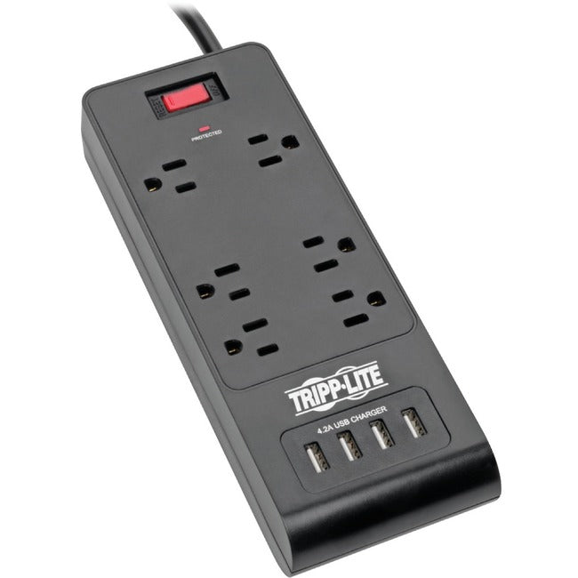 Tripp Lite Surge Protector Power Strip 6-Outlets 4 USB Ports 6ft Cord Black