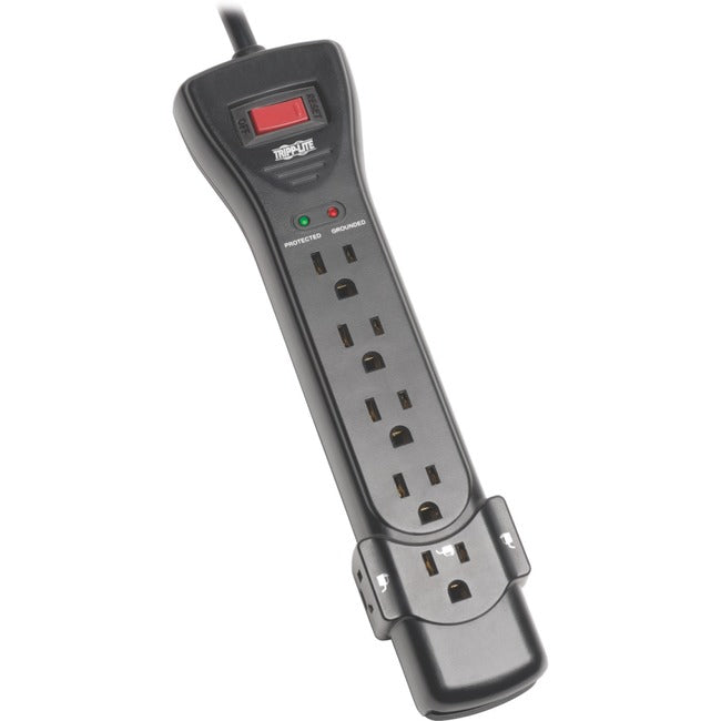 Perfect for your home or office workstation, the SUPER725B Protect It! 7-Outlet Surge Protector features a surge suppression rating of 2160 joules to defend your sensitive electronic components against strong surges and spikes. In fact, Tripp Lite will repair or replace any connected equipment damaged by surges, including direct lightning strikes, up to ,75,000 for life (valid in the U.S., Canada and Puerto Rico only).The SUPER725B includes full normal mode (H-N) and common mode (N-G/H-G) line surge suppression, as well as technology that filters out disruptive EMI/RFI line noise, preventing interference from disrupting your electronics and inflicting damage or data loss.Your computer and peripherals plug into seven NEMA 5-15R outlets. Two outlets are mounted on the side to let the SUPER725B accommodate three bulky transformers without blocking adjacent outlets. Integrated 15-amp circuit breaker protects all outlets against dangerous overloads.