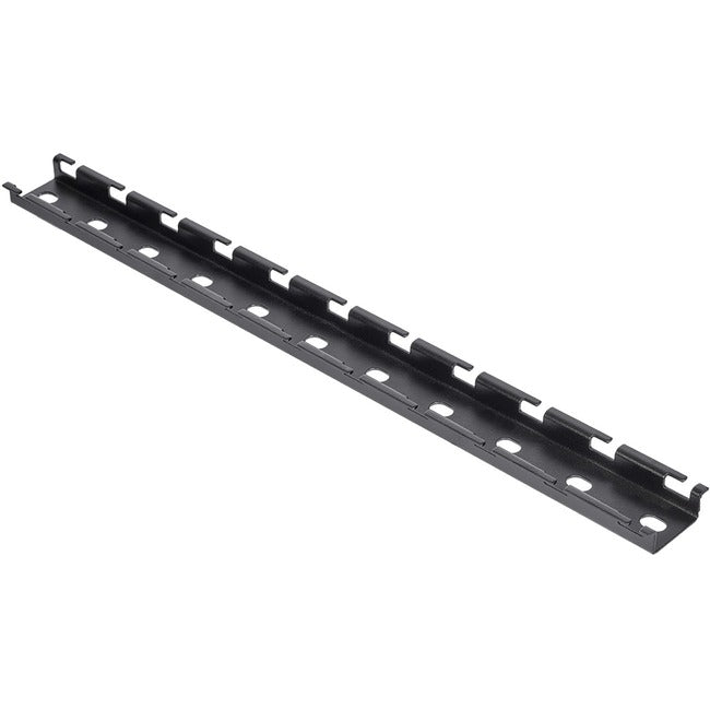 The Tripp Lite SRWB18CROSSBRKT is a black powder-coated metal cross-bracket that allows you to hang wire mesh cable tray from the ceiling of your data center, network closet or industrial space. It attaches to the ceiling with user-supplied hardware and then effortlessly snaps into the wire mesh. For best practice, tray support is recommended approximately every five feet.