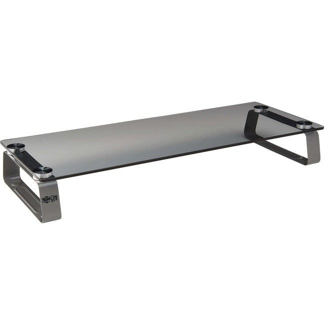 Universal glass-top monitor riser not only frees up valuable space on your desk, table or workstation, it does so with chic, contemporary style that fits perfectly into any home or office decor. By placing your monitor 3" above the surface, it also helps ease eye and neck strain to keep you working comfortably throughout your day. The extra-large, tempered glass platform supports up to 40 lb. to also support laptops, printers, fax machines and small TVs. Brushed aluminum legs with rubber feet secure the riser on smooth surfaces to prevent sliding. A keyboard can fit easily beneath the glass platform for convenient storage. Easy-to-use design assembles in just a few seconds for quick, simple use.
