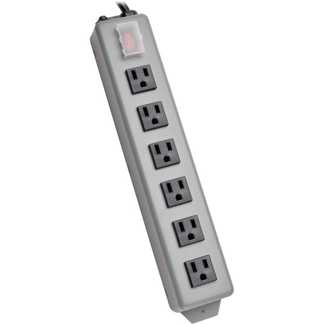 The Waber-by-Tripp Lite 6SP Power Strip offers a convenient method of power distribution in workbench, wallmount or floor mount applications. Includes 6 NEMA 5-15R output receptacles with 1.625 inch center-to-center spacing, 6-foot AC line cord and keyhole mounting tabs for installation in a wide variety of applications. Corded, multi-outlet strip reduces cable clutter and enables the connection of multiple electrical devices to a single AC wall socket. Unfiltered electrical pass-through makes 6SP ideal for distributing alternate waveform UPS or generator power. Features rugged all-metal housing, lighted power switch, 15A resettable circuit breaker and attractive blue/gray color scheme. PLUG/OUTLETS - Input: NEMA 5-15P/Output: 6 NEMA 5-15R ELECTRICAL - 120V AC, 50/60Hz, 15A (Requires standard NEMA 5-15R wall receptacle) FORMAT - Corded power distribution strip