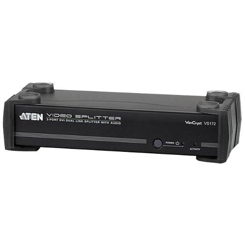 The VS172 2-Port DVI Dual Link Splitter with Audio combines DVI quality video and audio, taking signals from an audio/ video source and replicating them to two audio/video outputs. This video splitter uses dual link technology, which offers high bandwidth capacity for added transmission power and faster refresh rates, thereby providing better video quality of viewing resolutions up to 2560 x 1600.