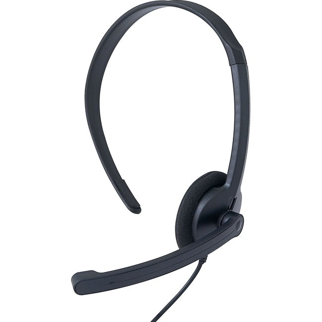 Mono Headset with microphone and in-line remote combines clean sound, lasting comfort and versatile functionality that make it perfect for plug-and-play use in a variety of applications. Headset's ergonomic design features an adjustable headband with soft foam covers on the ear pads for long-lasting comfort. Rotatable microphone is easy to position for optimal speaking quality and then swings up and out of the way when not in use. An in-line remote control enables you to adjust the volume and turn the microphone on and off. Headset is universally compatible with 3.5mm audio jack.